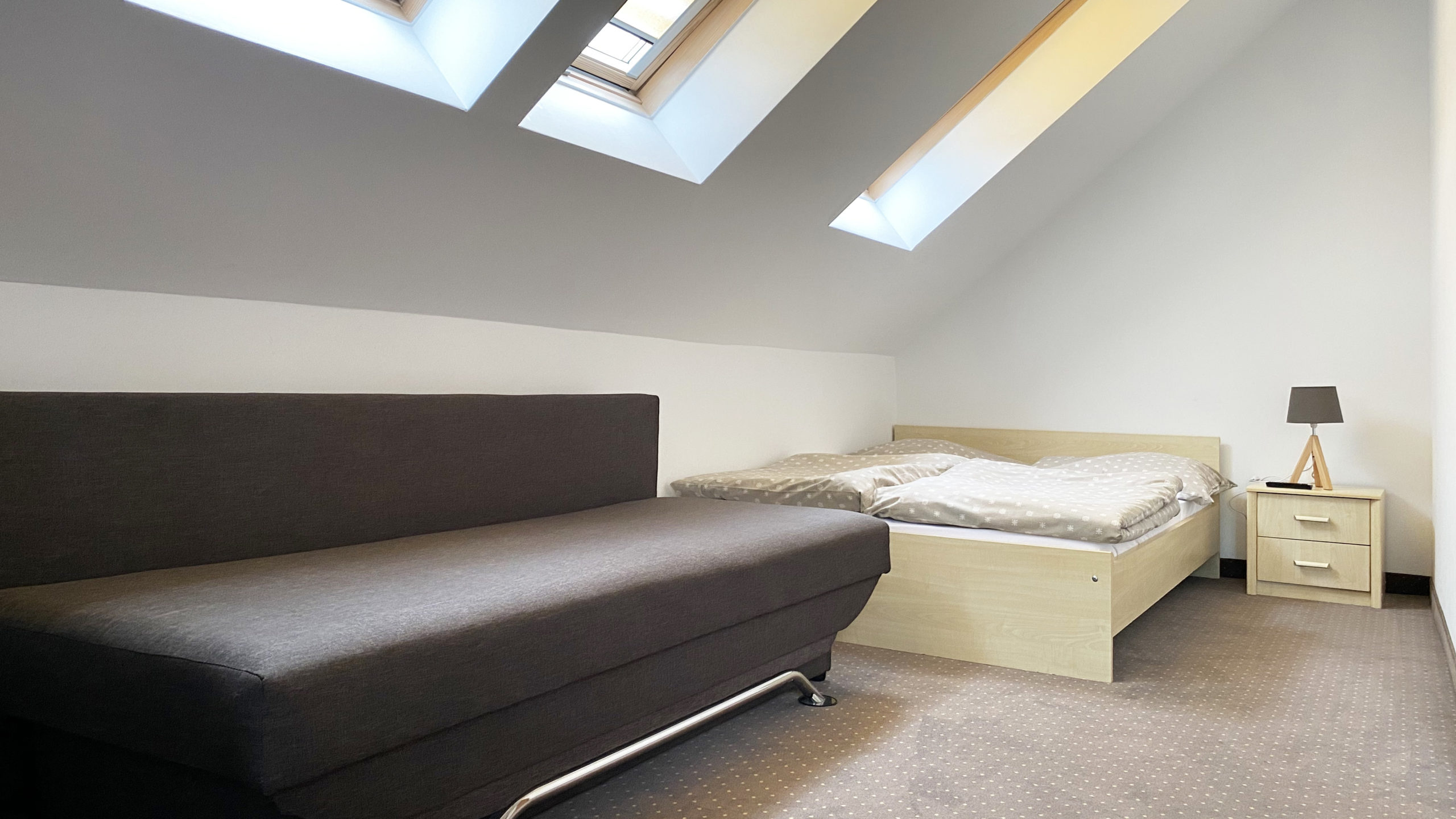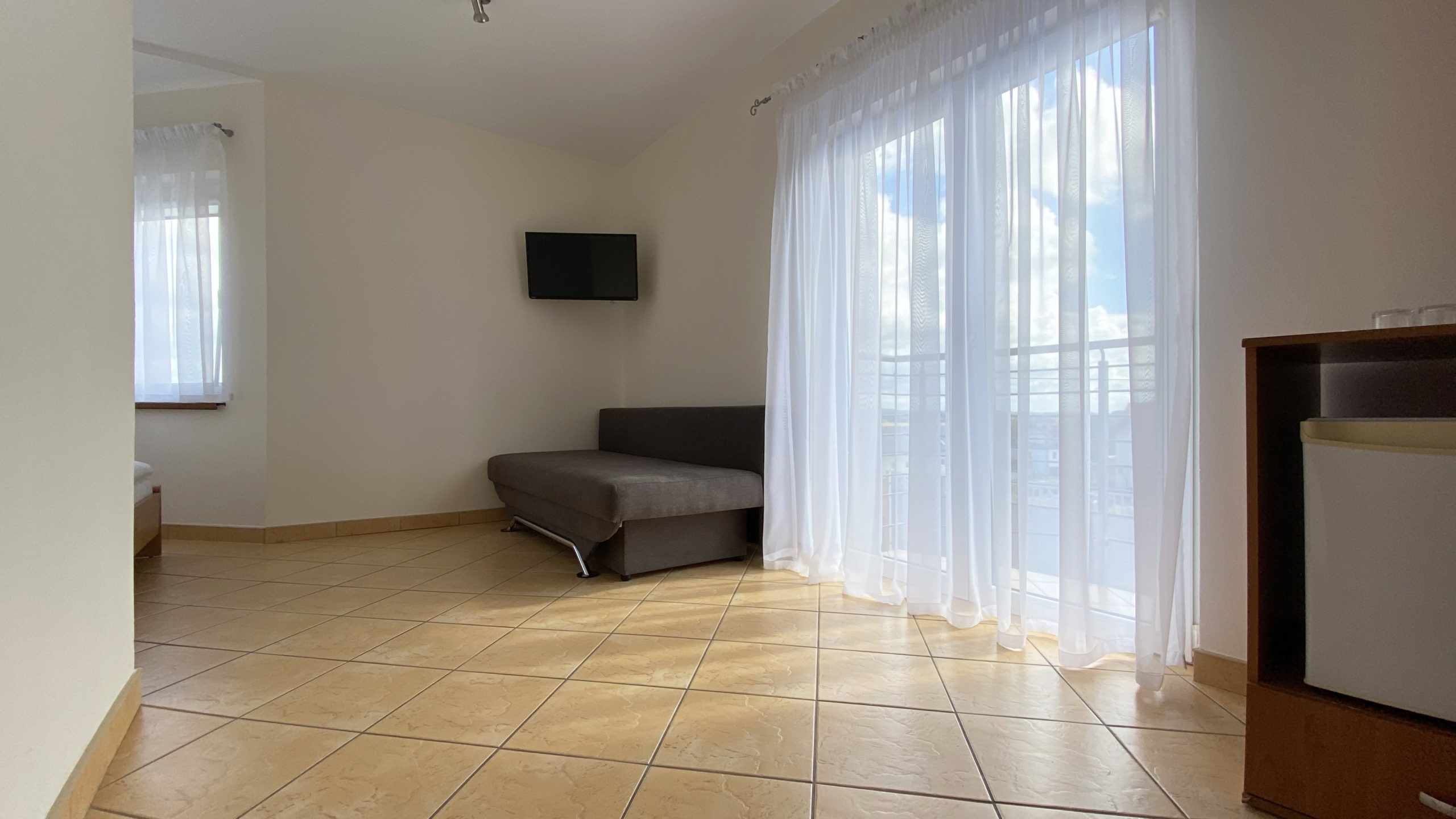Każdy pokój został wyposażony w łazienkę z kabiną prysznicową, telewizor LCD, lodówkę oraz bezpłatny dostęp od internetu Wifi. Do dyspozycji Gości posiadamy pokoje 2-osobowe z dodatkowym łóżkiem/sofą.