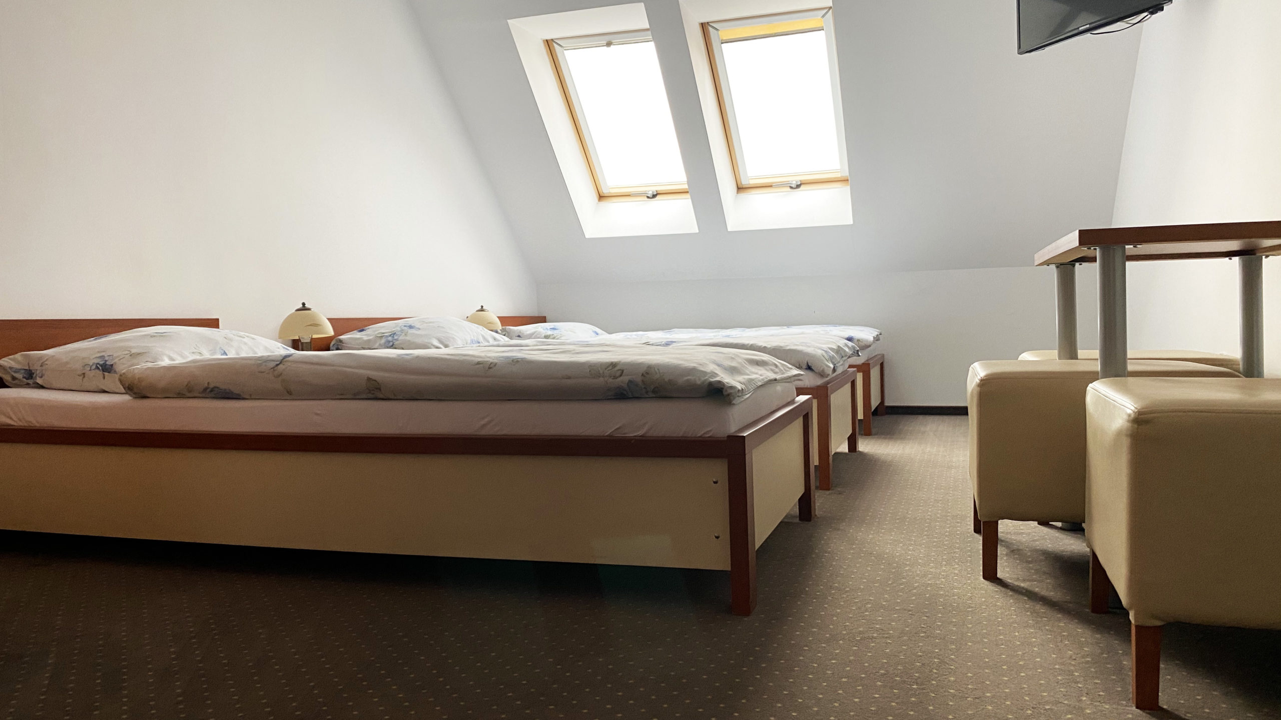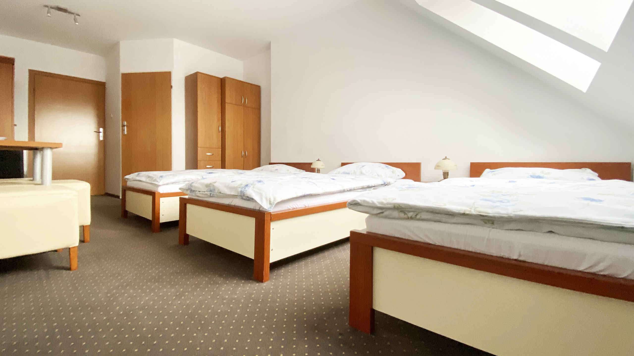 Każdy pokój został wyposażony w łazienkę z kabiną prysznicową, telewizor LCD, lodówkę oraz bezpłatny dostęp od internetu Wifi. Do dyspozycji Gości posiadamy pokoje 3-osobowe Economy z łożem podwójnym lub z trzema pojedynczymi łóżkami.