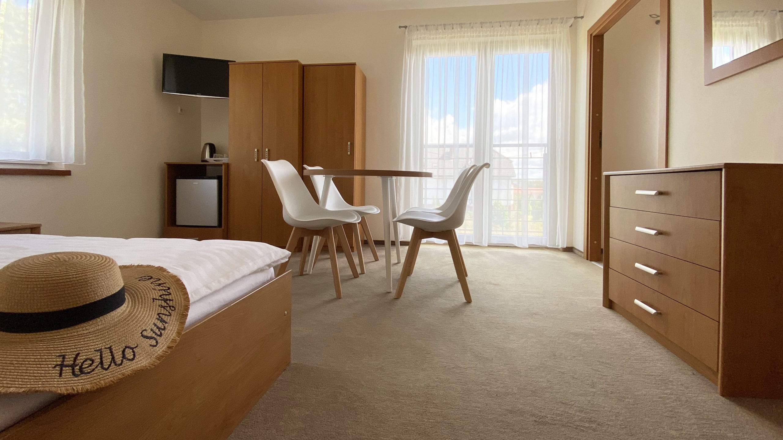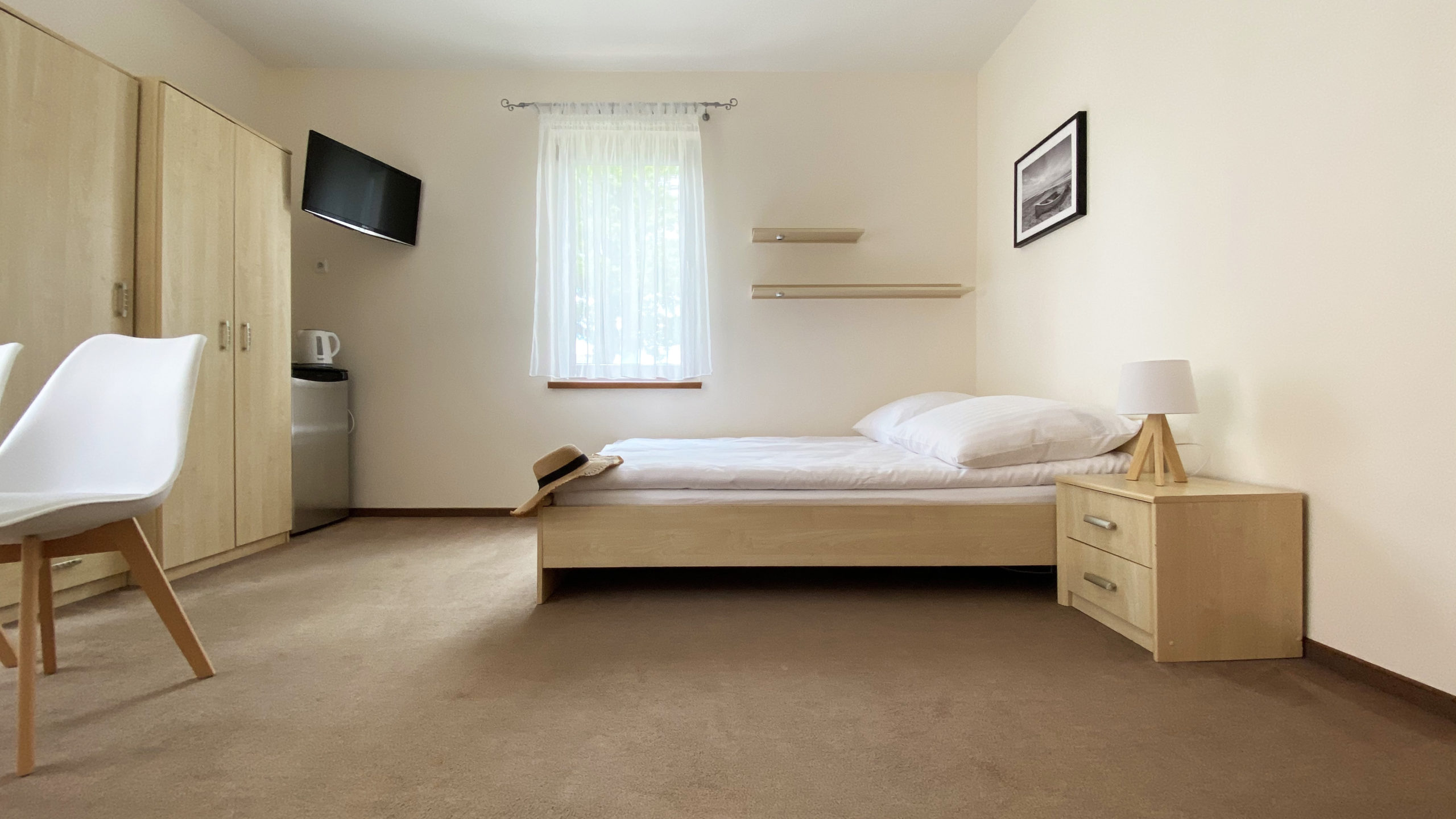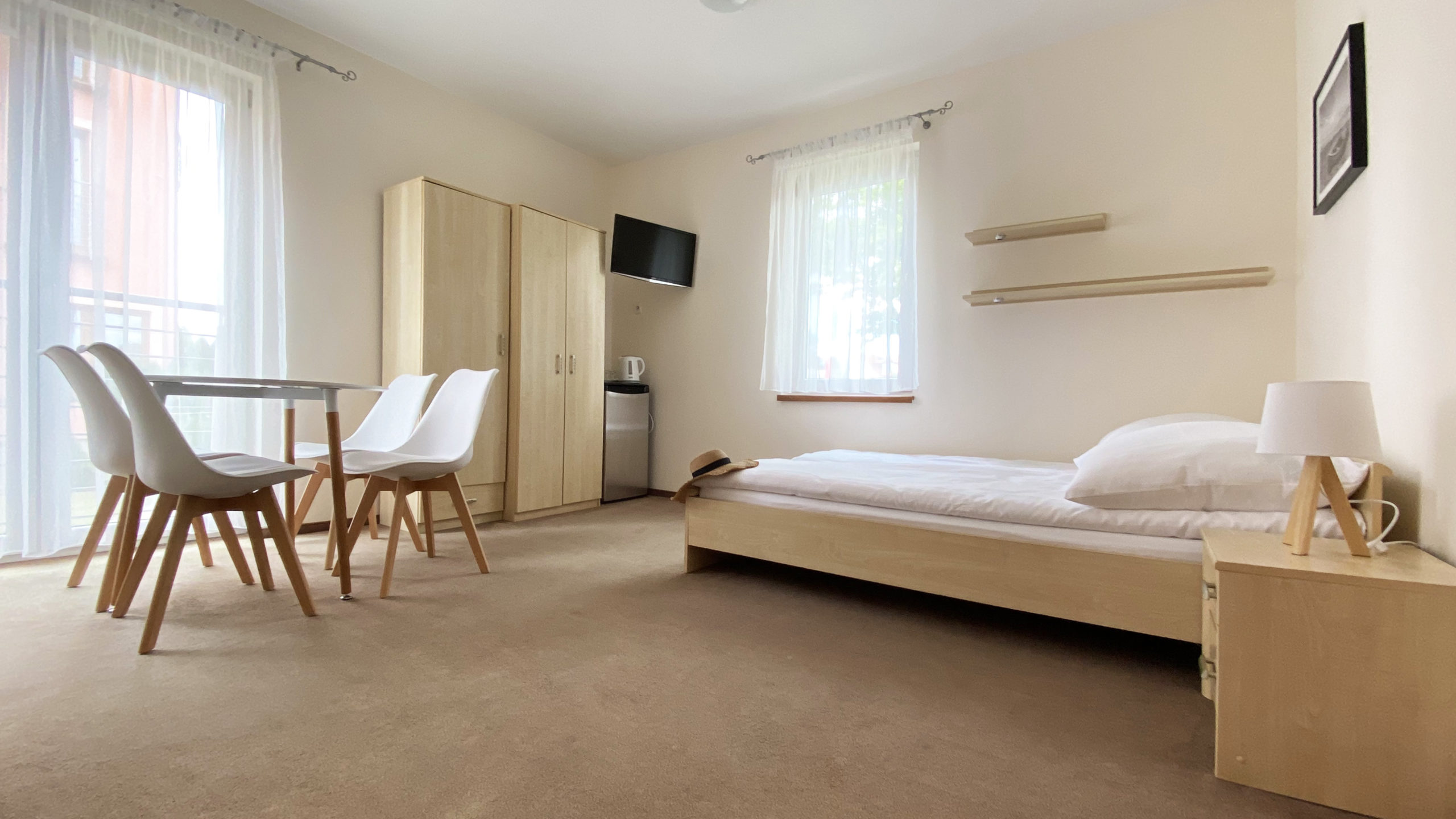 Każdy pokój został wyposażony w łazienkę z kabiną prysznicową, telewizor LCD, lodówkę oraz bezpłatny dostęp od internetu Wifi. Do dyspozycji Gości posiadamy pokoje 2-osobowe z łożami podwójnymi lub z dwoma pojedynczymi łóżkami.