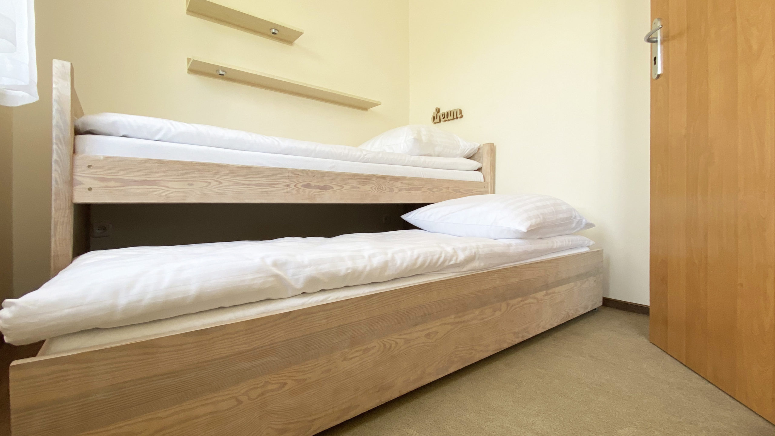 Oferujemy noclegi w pokojach 2, 3, 4-osobowych, a także w pokojach rodzinnych oraz 5-osobowym apartamencie.